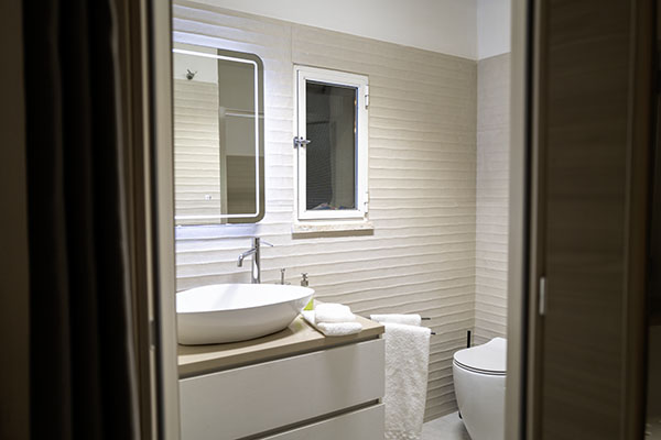 Das Villino al Faro verfügt über zwei vollwertige Badezimmer (jeweils Dusche/WC/Bidet). Eines der Badezimmer gehört zum Doppelschlafzimmer, das zweite Bad ist vom Wohnbereich aus zu erreichen.
